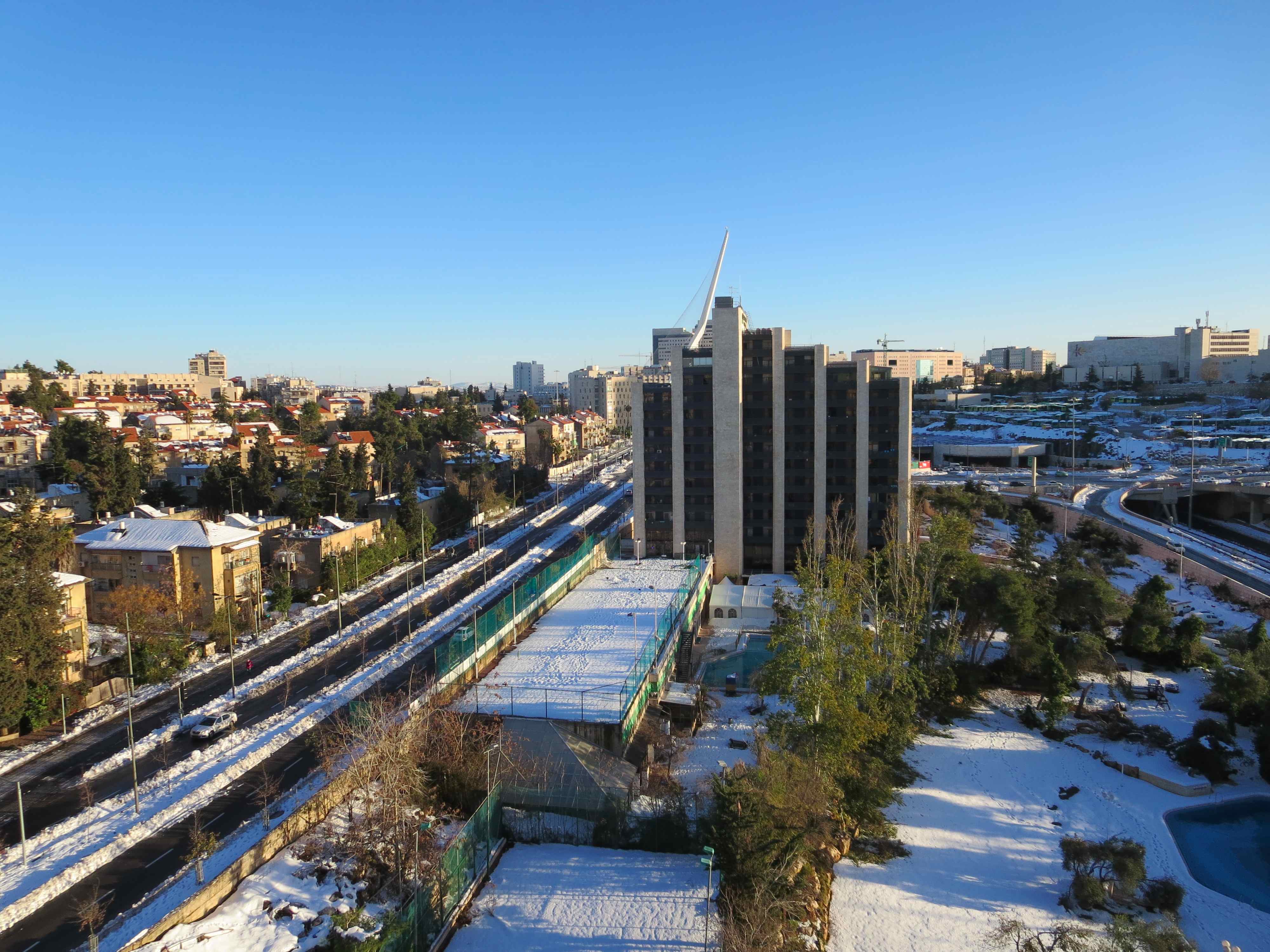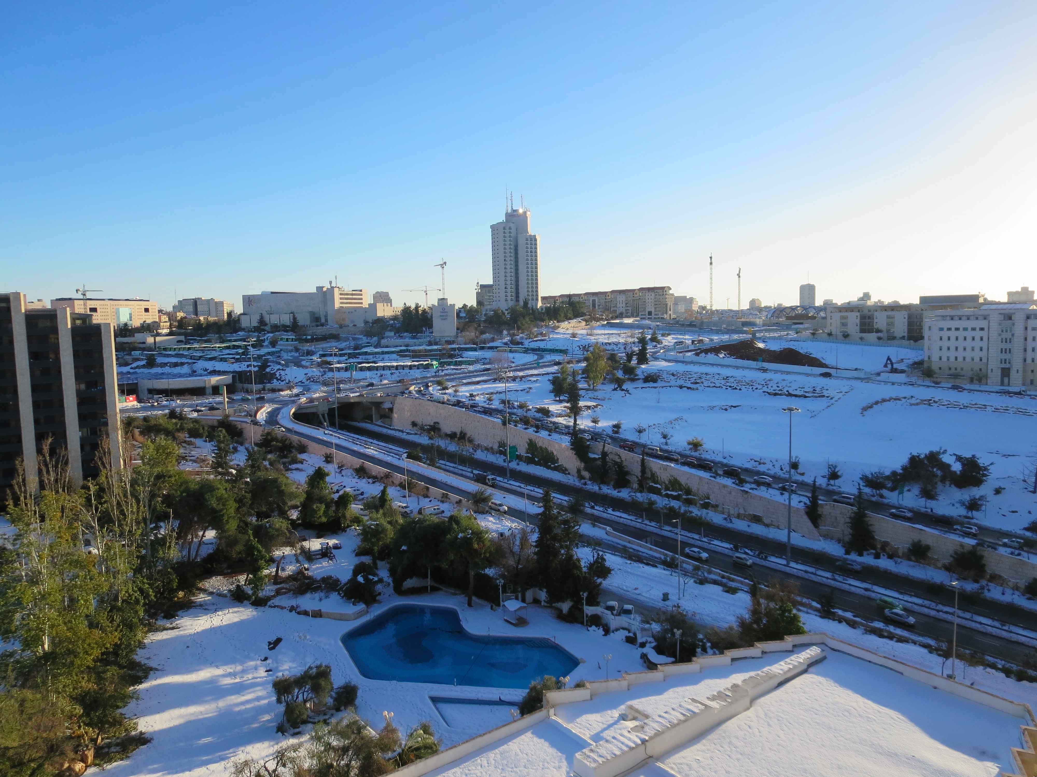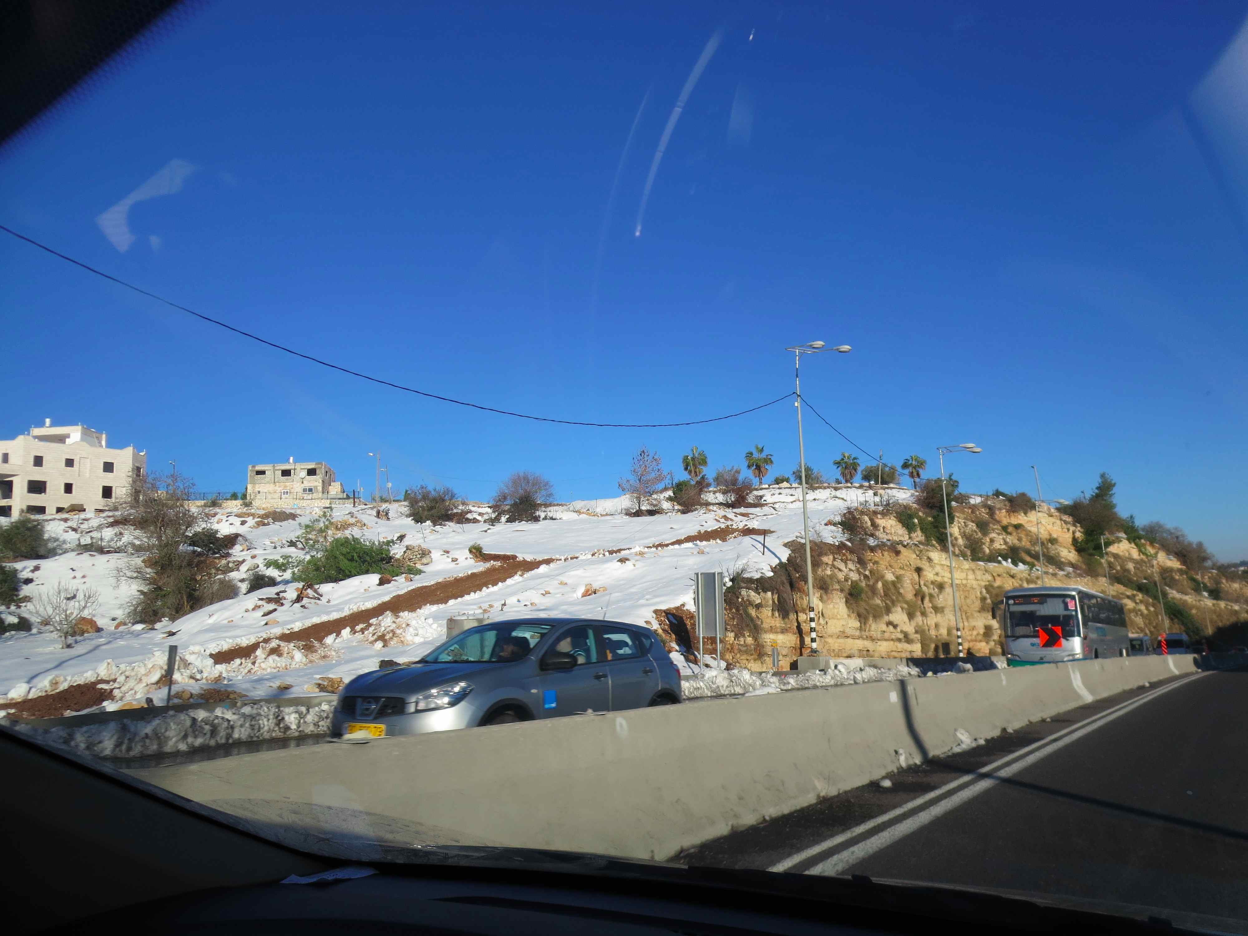 Thankfully, my brother grabbed the only thing that was going north at that time, the rakevet (AKA train). When he tried to go to the taxis at the airport, they all said they were not going to Jerusalem, so the only option left was the train. By the time he got on the train, it was standing room only, he was totally shocked! By the time he made it to Jerusalem, by 3PM or so, the first round of snow was just starting to melt and subside and the roads were clearing up. If we had made a run for it earlier in the day, and we had gone to Ella Valley, our car would have been stuck down there – as the highway did not open up again till Sunday!