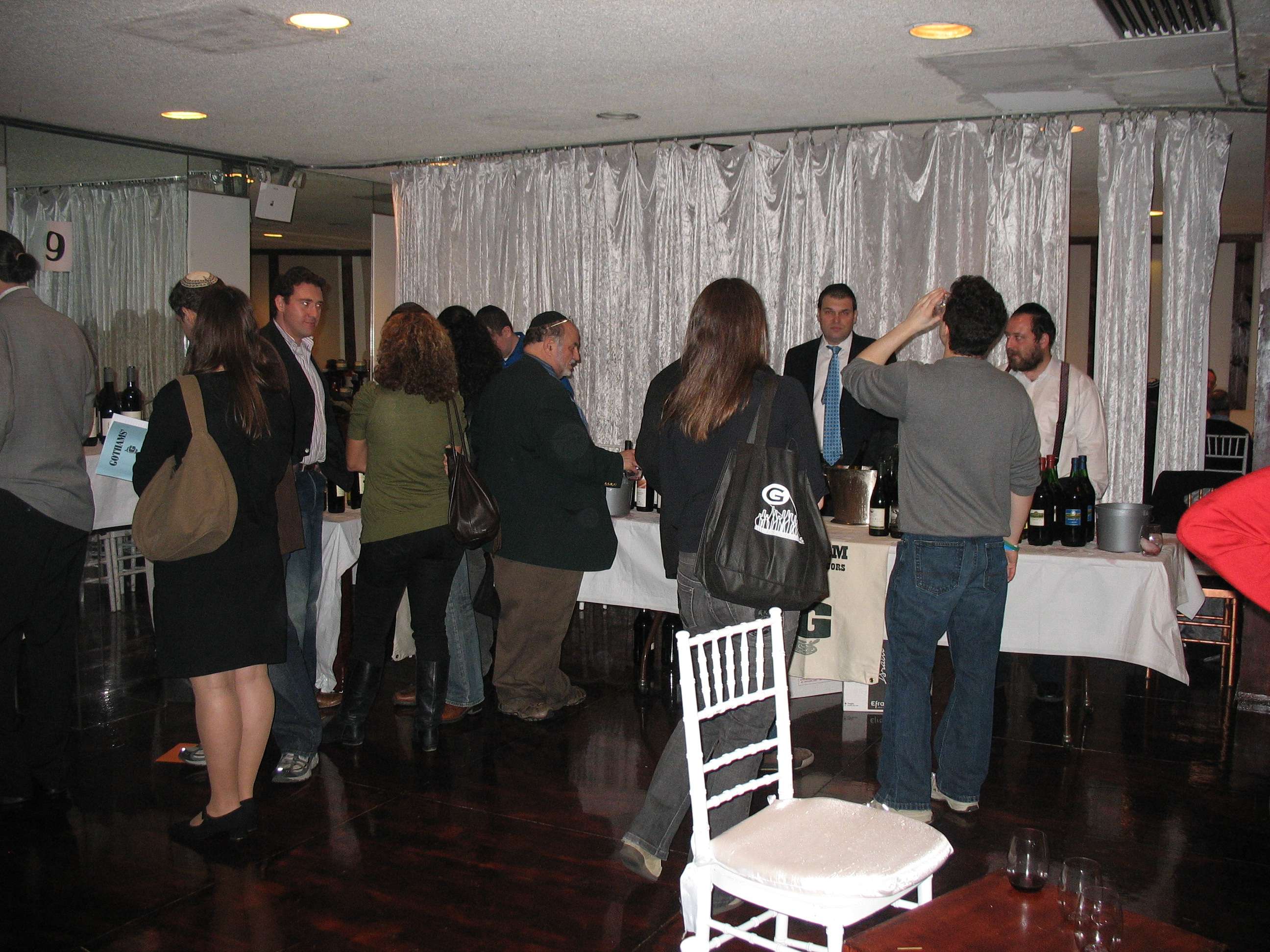 This past week saw my friend (the ultimate wine novice) and me at what can truly be called the greatest “kosher wine event” on earth. This is not the place to come if you want to be fed a wonderful spread, or the place to come if you want to be fed line after line by people who have no idea on what differences there are between a Pinot Gris versus a Pinot Noir, or what differences lay between a Viognier and a Chardonnay. Nope, this event is where the kosher wine world can come and taste a true assortment of kosher wines that are not under Royal’s control or someone else’s clutches. Nope, this event is put on by Gotham Winery, one of the places on earth where you can get a truly wonderful collection of kosher wines, and most of them – 362 wines to be exact, were on display at the Lincoln Square Synagogue. This was the 6th edition of this event, and one that was truly well attended. About 150 or so individuals packed the synagogues’ auditorium, in the basement, where they were graced with 12 tables laden with wines from all around the world.