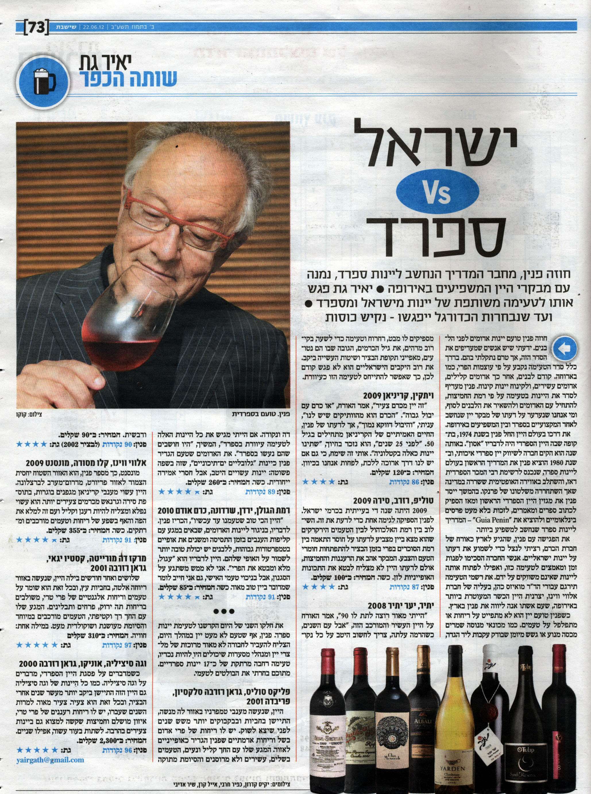 Yair Gat is not as well known as the late Daniel Rogov was in the English-speaking blogs and public, because Mr. Gat writes in Hebrew and pretty much stays to himself. Still, Yair Gat is a highly accomplished wine writer that writes a wine article for Israel Hayom, a daily newspaper in Israel.