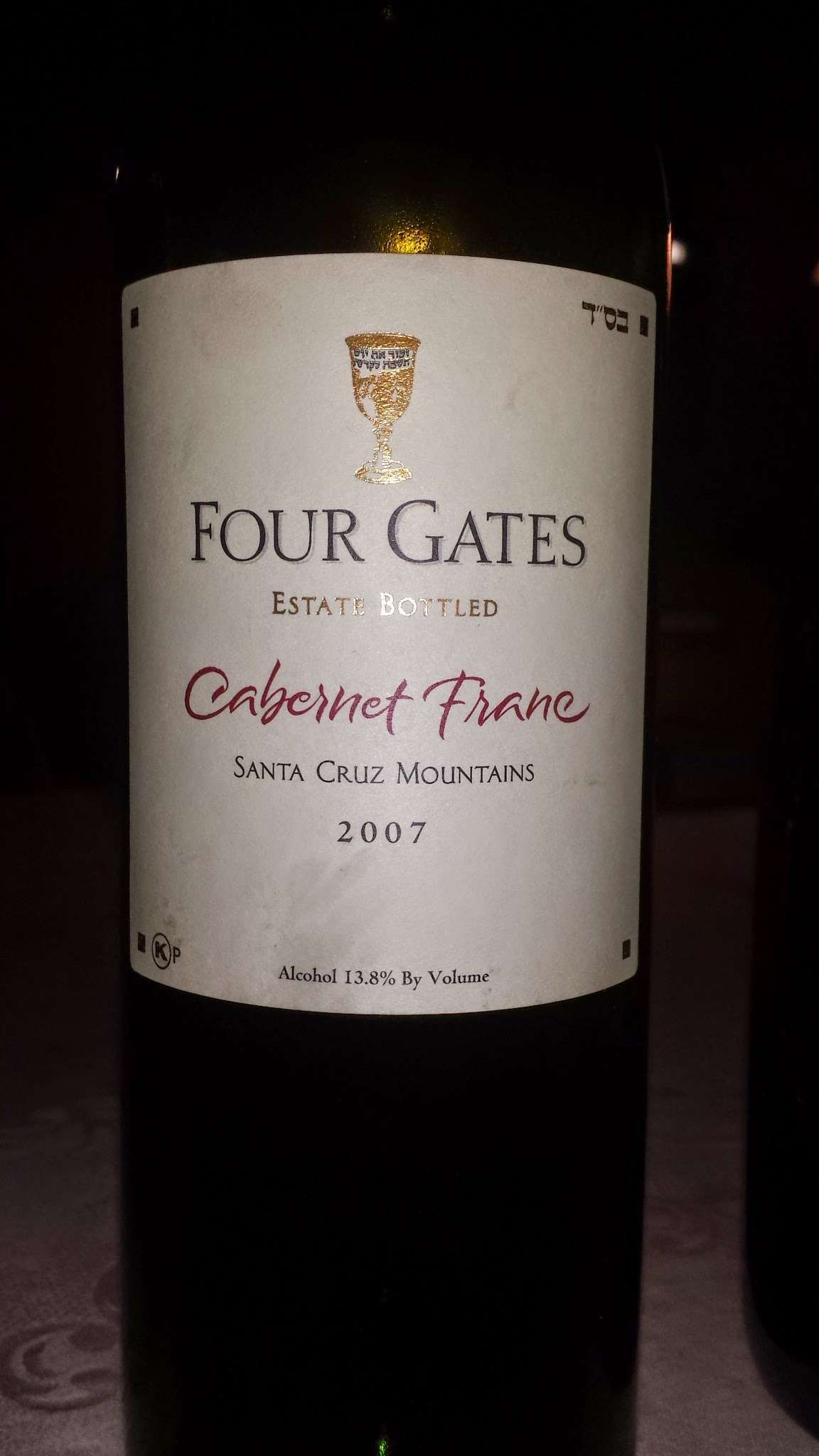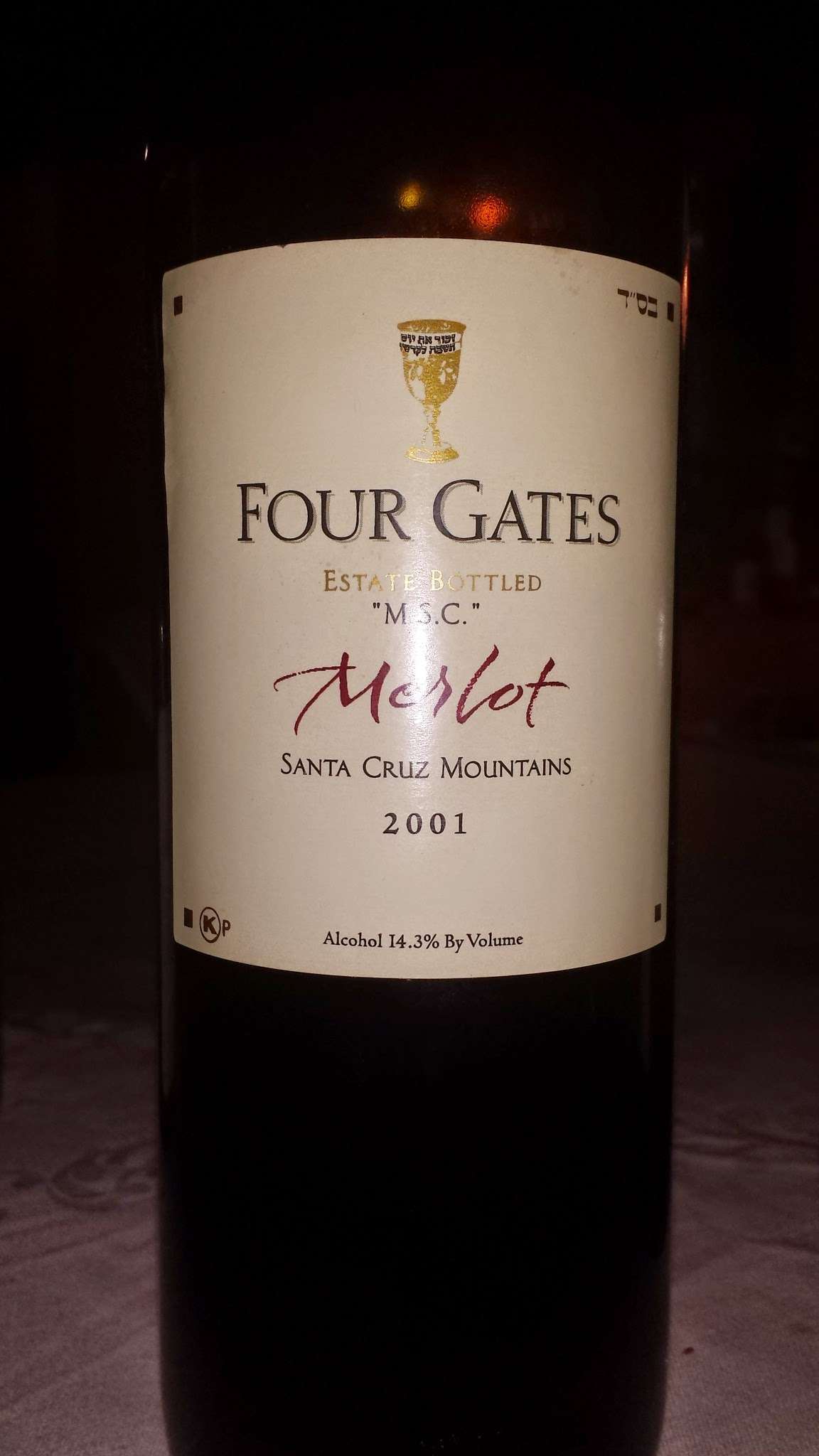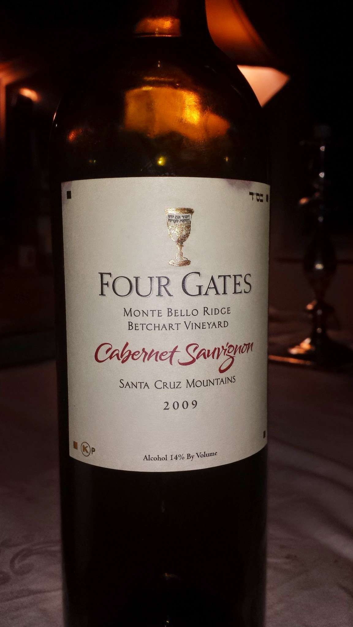 A few weeks ago, I spent Shabbos with some friends, GG and Mendel from Israel and New York respectively, at Benyo’s house, home of the Four Gates Winery, in the hills of Santa Cruz, CA. It was, as always, one of those nights that are hard to forget, but took me time to get down on “paper”. We enjoyed so many great wines and food that I laugh at it now. We brought over the meat and a few bottles, and Benyo took acre of the rest, including accommodations, awesome food, and a non stop supply of crazy wine!