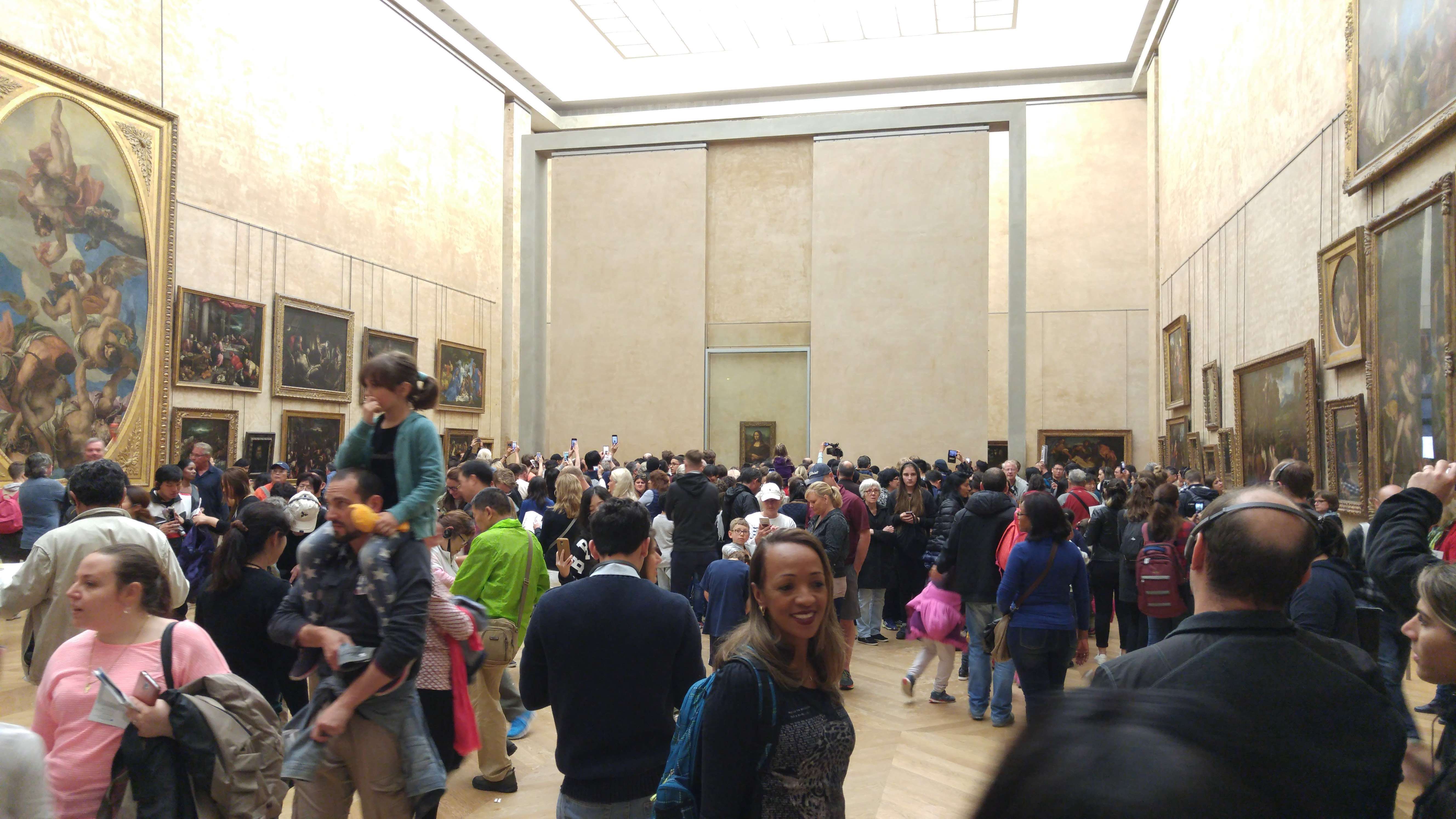 Anyway, enough of my hatred for all things really old, my nephew wanted to see the mona lisa and I was happy to see the Winged Victory of Samothrace – it is old but really cool! The insane aspect was that people were waiting in a line for three hours to go into the louvre! The line was for folks who were buying tickets for that day. I saw that line and I said this is insane, it is raining, wet, annoying, and this is no pirates of the caribbean ride! Why would I wait three hours! So, in classic American style we walked up to the front and there in plain sight for all was another line, a line through which you could walk straight into the museum, all u needed were electronic tickets! Nephew on phone – three minutes later we have tickets and in we go! Sadly, that was the best part of the story! You see the place was PACKED! Crazy packed! The louvre is closed on Tuesdays, the BEST museum in Paris, the Musee d’Orsay is closed on Mondays, there is the mona lisa, oh and did I mention it was POURING! – so the combo made for a not so comfortable experience even inside the dry museum (which was not dry for long)!