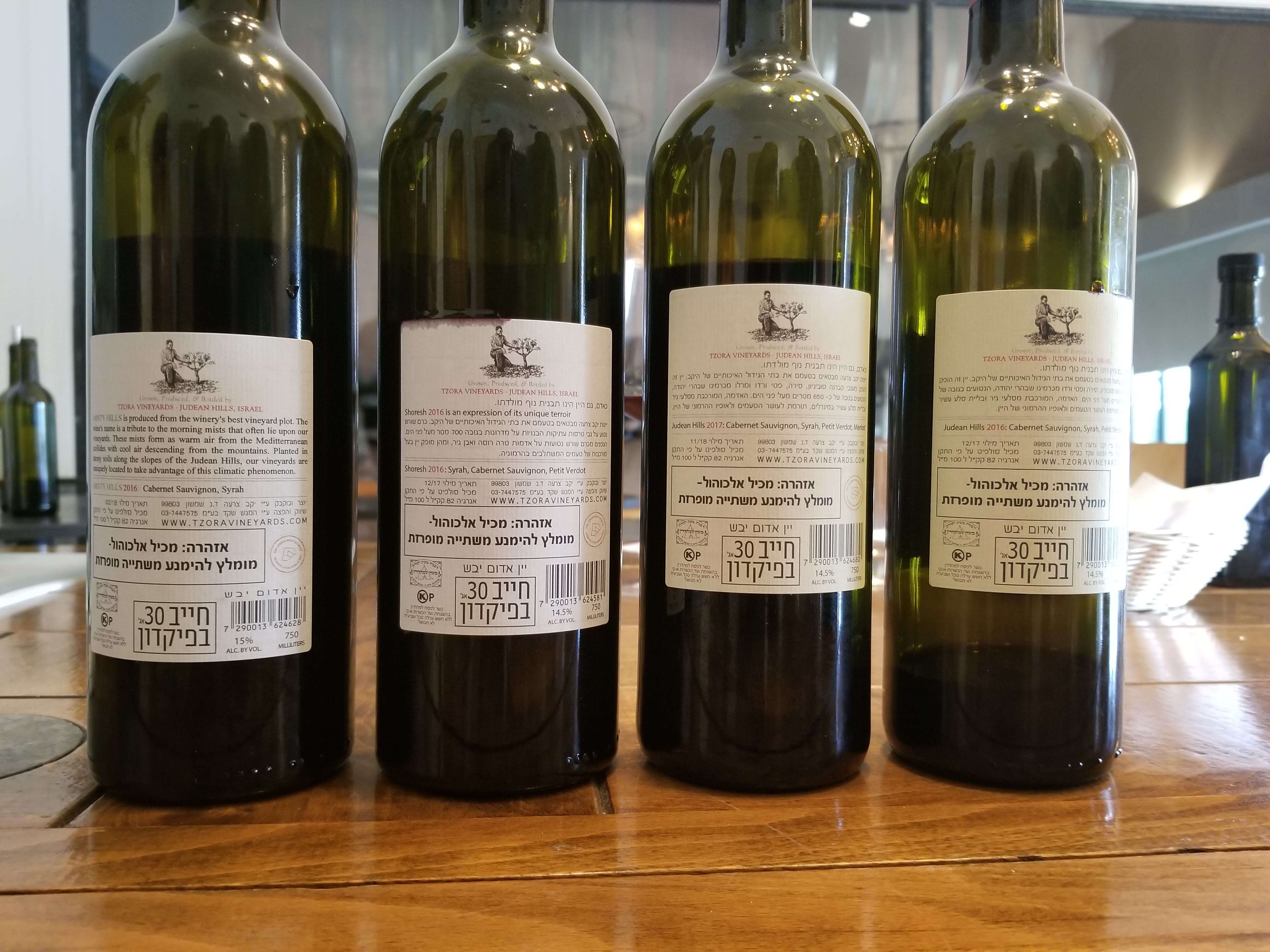 As always, Tzora Winery has three labels. The first is Judean Hills with two wines under it, a red blend and a white blend. Next is the Shoresh label, it also has a red blend and a white wine as well, that is pure Sauvignon Blanc. The Shoresh brand also has a dessert wine called Or. Finally, there is the flagship wine – Misty Hills.