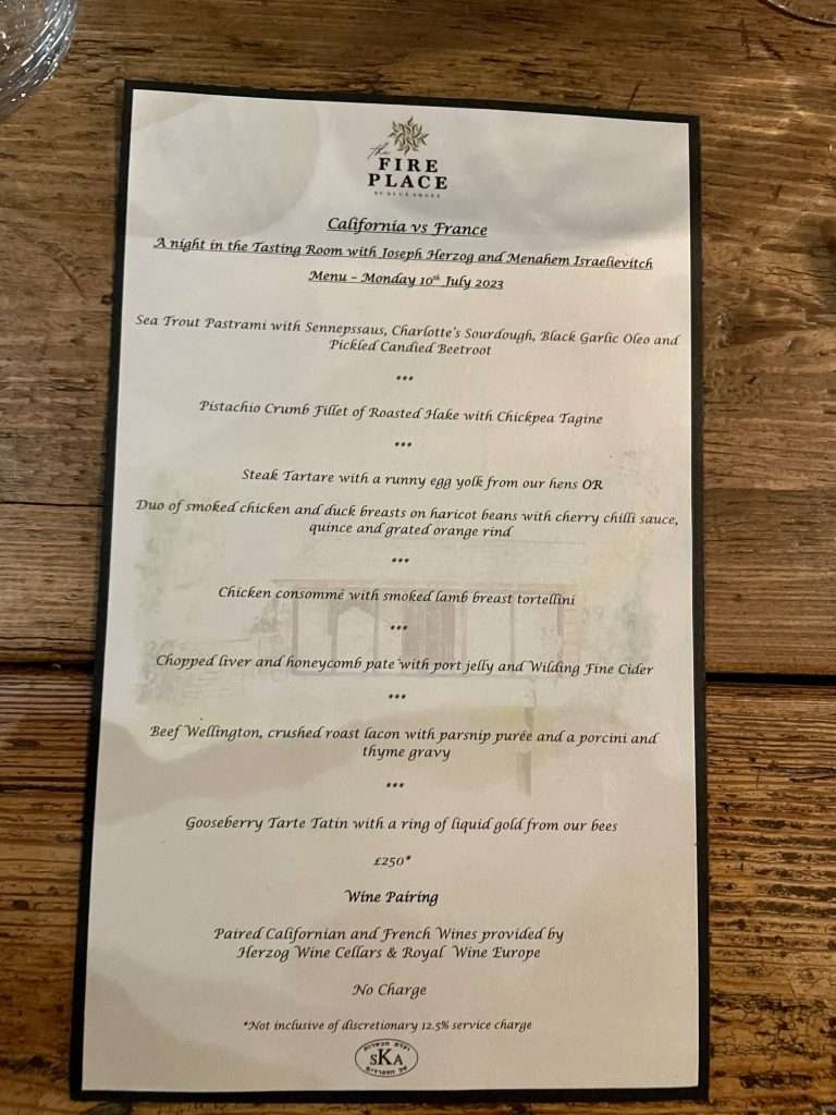 This year was no different. As has now become almost customary, the KFWE was proceeded by a festive dinner. Rather than hosting us at his house as we did in the old days, Andrew Krausz hosted us at his newly opened restaurant “The Fireplace by Blue Smoke”. The attention to detail in putting this spot together in what amounts to his backyard (next to the retired airplane) is incredible – as was the food (pictures of which are below). Having said that, I do miss the more intimate feeling of being at home. This was more of a formal setting and a guided tasting hosted by Royal and led by both Menahem Israelievitch and Joseph Herzog, which paired each dish with both French and Californian wines. As is always the case with food and wine – there were some hits and some misses – but none of that really matters. It was about the experience, which was fun. On the food side, believe it or not, my favorite dishes were the fish – both the gravlax and hake. Andrew just does them both exquisitely. On the wine side, for me France took the night handily with wonderful showings of the 2019 Gazin Rocquencort, 2020 Le Hardi Gevrey-Chambertin, 2016 Château Lascombes and the 2020 Château Léoville Poyferré. We also had a couple of unique tastings, including the never released first edition of the Generation VIII, which was a 2002 North Coast Cabernet Sauvignon, as well as a barrel sample of the 2021 Warnecke Vineyard CS. Interesting indeed. I have to spend a moment also on the dessert. The original dessert that Andrew planned did not set properly, and so he whipped up a substitute. While a brownie may seem mundane, this was one of the best I have ever tasted. I can’t say that it paired well with the 2018 Château Piada – but like I said, it was unplanned – and excellent.