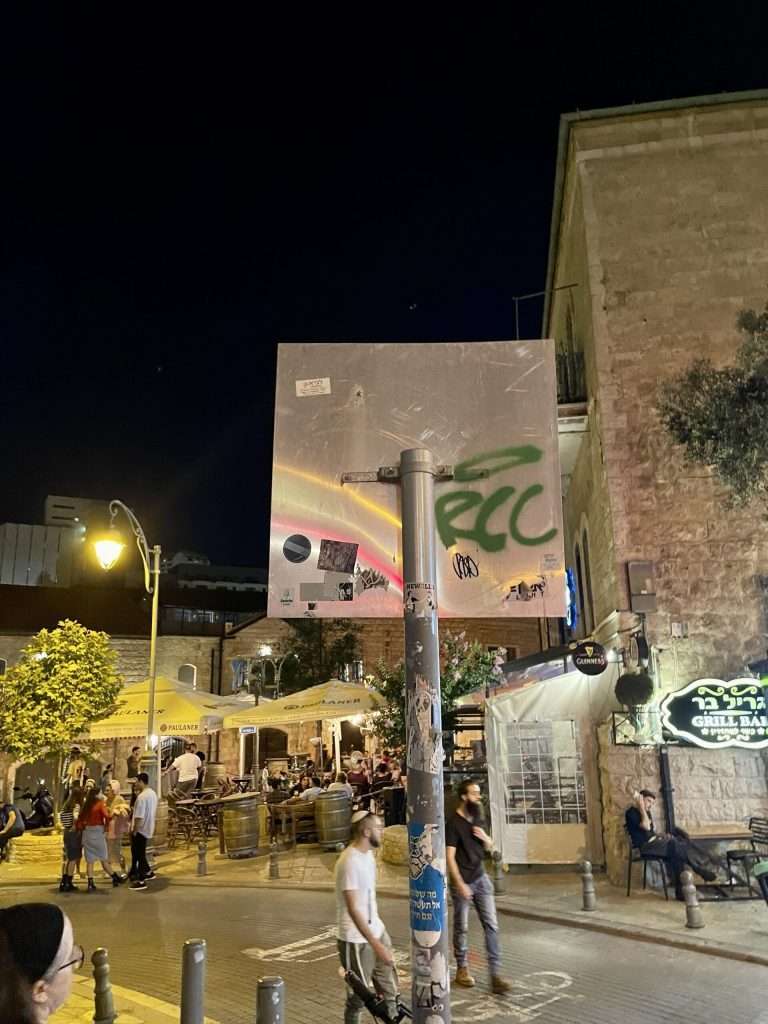 During the summer it’s always hard to find people to cook and so we decided to go with a restaurant this month. The restaurant in question is Mojo’s, which is a new venture by the Maller family. Tzvi Maller has a number of restaurants under his belt – most recently Crave in Jerusalem and Nobo in Teaneck, but a number of others before that as well. Mojos though is the first time the Maller family has made it a true family affair without any other partners involved in the day-to-day operation. And the Mallers are involved in every area – both in the kitchen and front of house, augmented of course by a truly pleasant and professional staff. But the real star of the show is the food. As you can see from the menu, we sampled a wide variety of menu items. I cannot remember the last time where EVERY single items was a hit. Yes, there was a slight delay between the first 2 courses – but this is a brand new restaurant which received a glowing review the same day from the Times of Israel – and so was literally packed from the time we got there until shortly before closing. Other than that delay, the food came out like clockwork and, as mentioned, was very tasty. It is hard to even choose a favorite dish – really they were all good – from the opening Caesar salad through the appetizers like the spaetzelle (reminiscent of a similar dish I remember from Nobo in Teaneck) and the Wagyu slider through their signature meat pizzas. They were all incredible (REALLY!) and pictures can be found below. But as effusive as I am about our experience, this is a wine blog after all, and it was pretty much a hit there as well. Yes there were two wines that were misses as far as I am concerned – but everything else was really great – and that’s a VERY good percentage. The only real downer is that when we taste in restaurants, its often very difficult to get a read on the nose in a way accurate enough to write notes, as you are in close quarters with other diners, and, in this case, there were aromas of lamb bacon and sausage that were wafting through the restaurant. But other than that, all in all, a pretty exceptional night. On top of that, right across the street from the restaurant on one of the security grates we noticed graffiti with the word “RCC” in plain sight. We then saw it again on random street signs. Clearly a sign that that Mojo’s is certainly an RCC-worthy choice to dine.