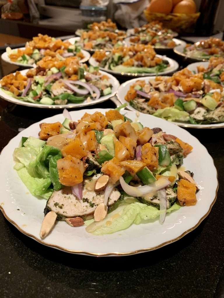 Chimichurri Chicken Salad, Roasted Sweet Potato, Toasted Almonds, Maple Dijon Vinaigrette